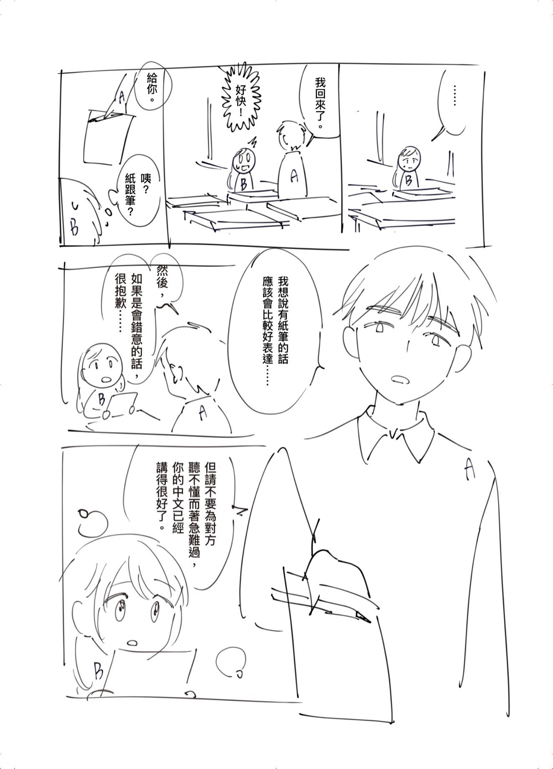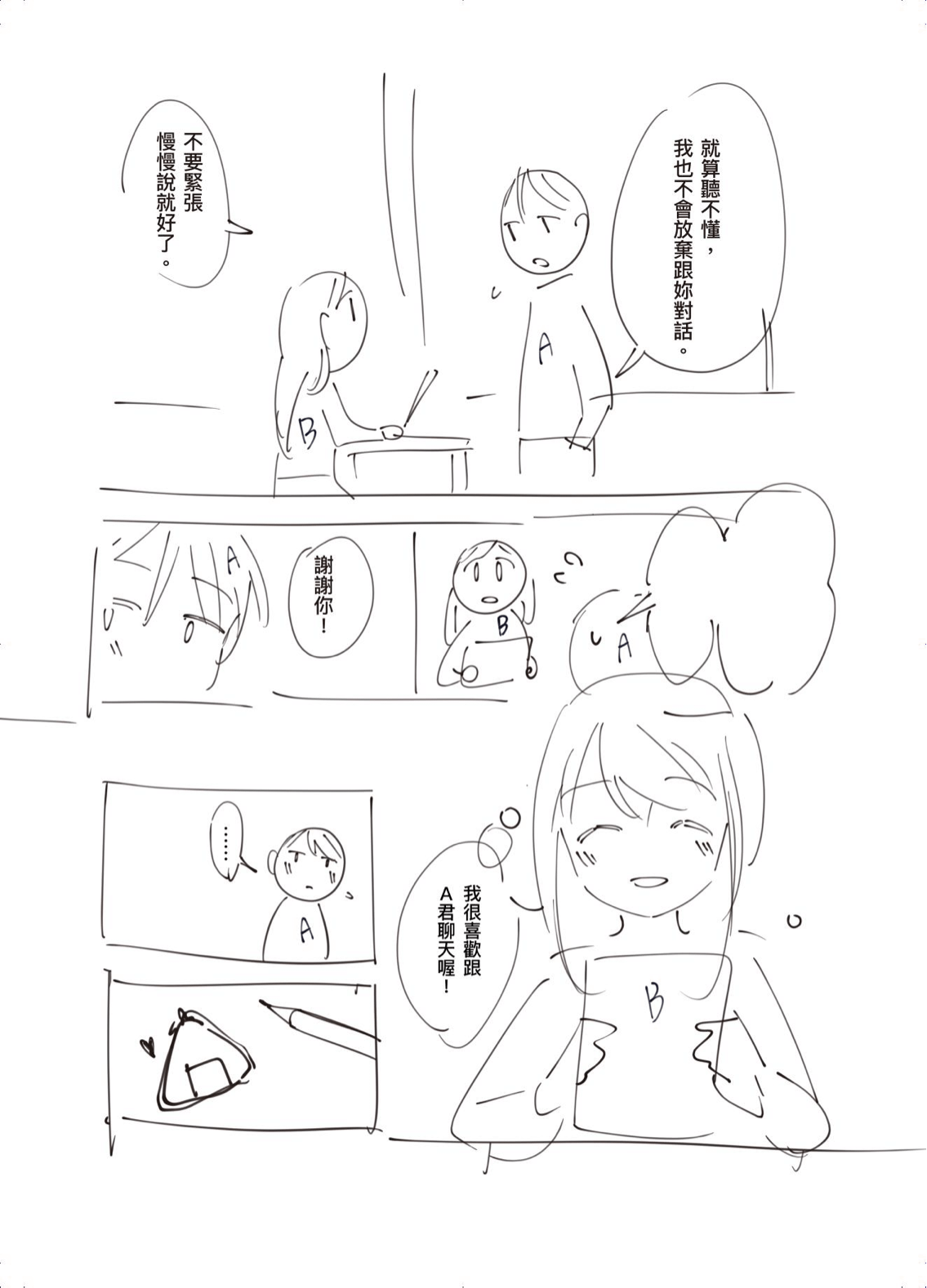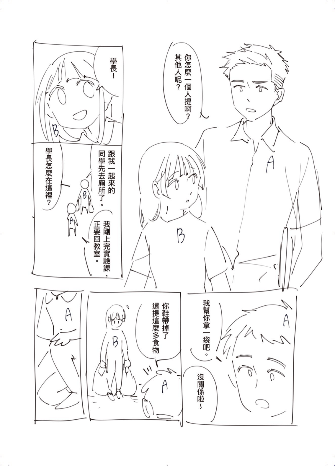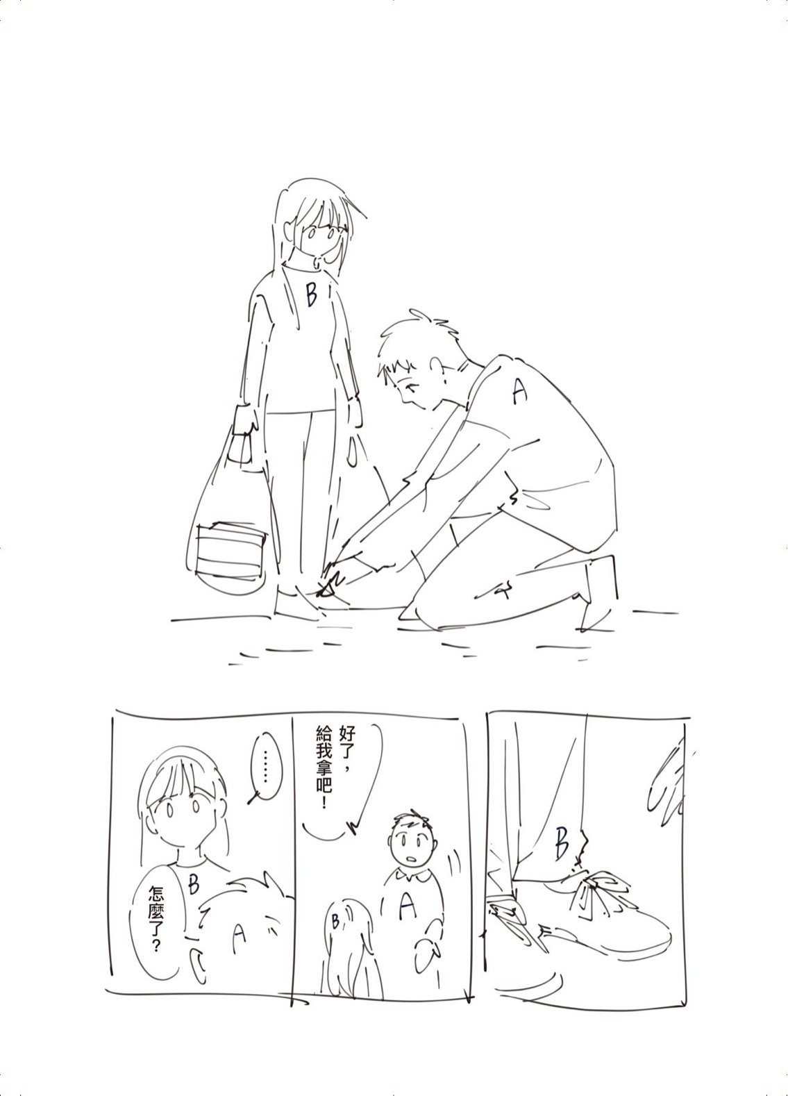 這次是兩個小短篇漫畫,用來確認角色個性,所以用「A男子」和「B女子」來畫~